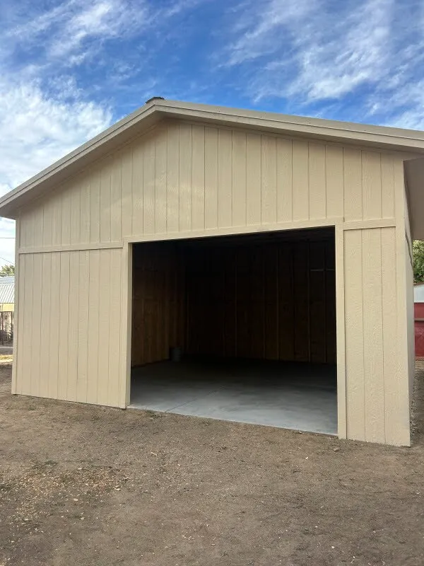 The Detached Garage from Yoder’s Storage Sheds is the perfect solution for homeowners who need a permanent, heavy-duty structure to protect their vehicles, tools, and equipment. Built on a monolithic concrete slab, it combines engineered wall framing, premium LP SmartSide siding, and a 4/12 or 6/12 roof pitch to deliver lasting strength and weather resistance through every Colorado season.