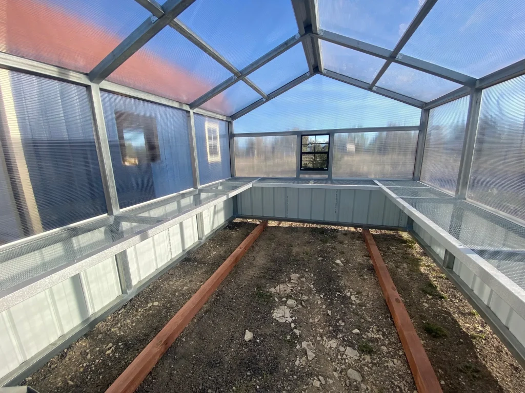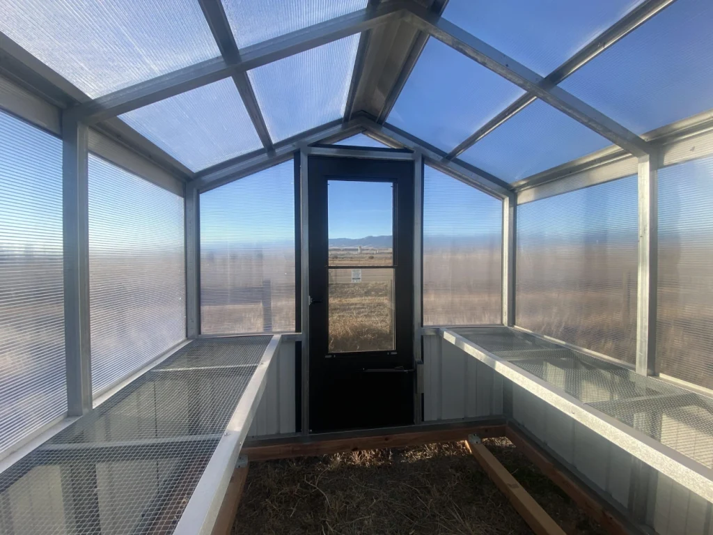 The Yoder’s Greenhouse blends modern strength with classic greenhouse design to deliver the ideal balance of light,  temperature control, and structural integrity. Constructed from galvanized 2″ steel tubing and wrapped in UV-resistant  polycarbonate panels, it’s built to handle Colorado’s intense sun, strong winds, and fluctuating seasons — without  warping or cracking.