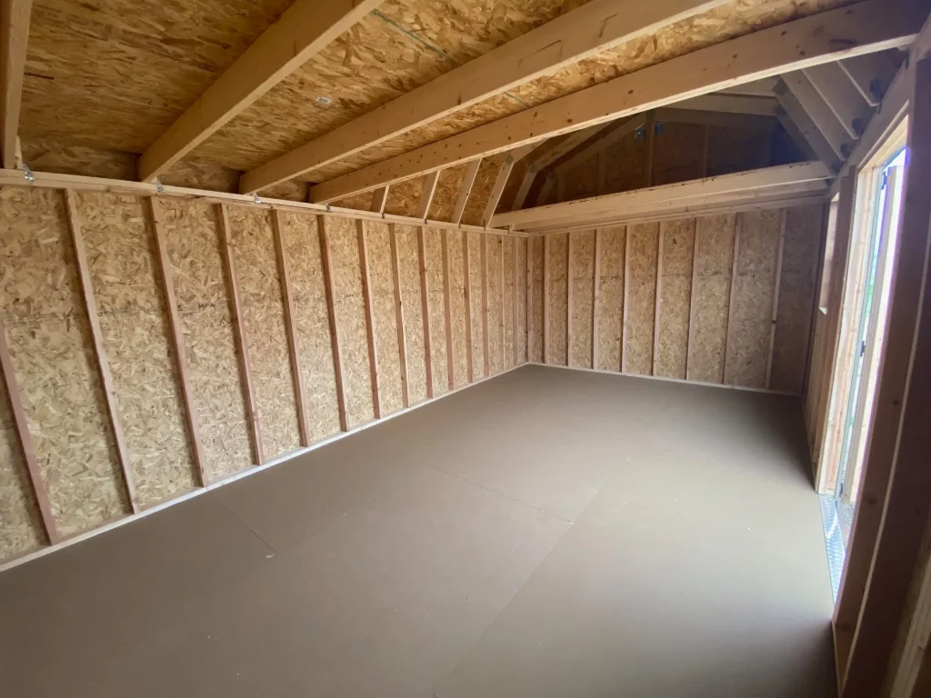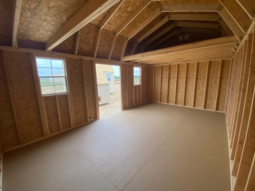 – Gambrel-style Roof for increased headroom & loft space